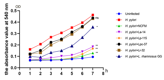 NCFM能顯著降低Hp感染引起的炎癥因子,降低Hp感染引起的胃部炎癥風險。